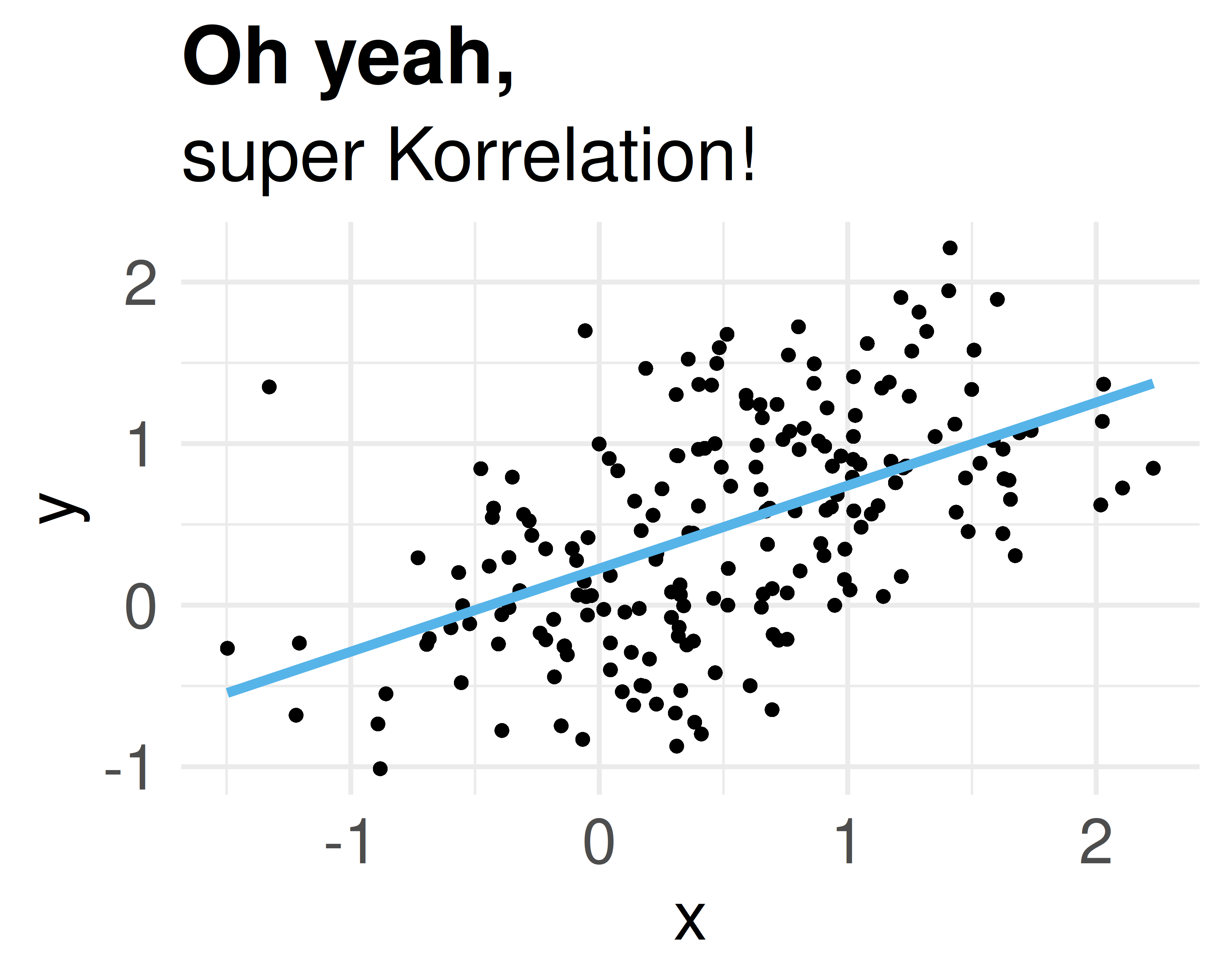 Man könnte höchstens sagen, dass man (wenn man die Kausalstruktur nicht kennt) die Modellkoeffizienten nur deskriptiv interpretiert, z.\(\,\)B. “Dort wo es viele Störche gibt, gibt es auch viele Babys” (Matthews, 2000).8 Leider ist unser Gehirn auf kausale Zusammenhänge geprägt: Es fällt uns schwer, Zusammenhänge nicht kausal zu interpretieren. Daher werden deskriptive Befunde immer wieder unzulässig kausal interpretiert – von Laien und Wissenschaftlern ebenfalls.