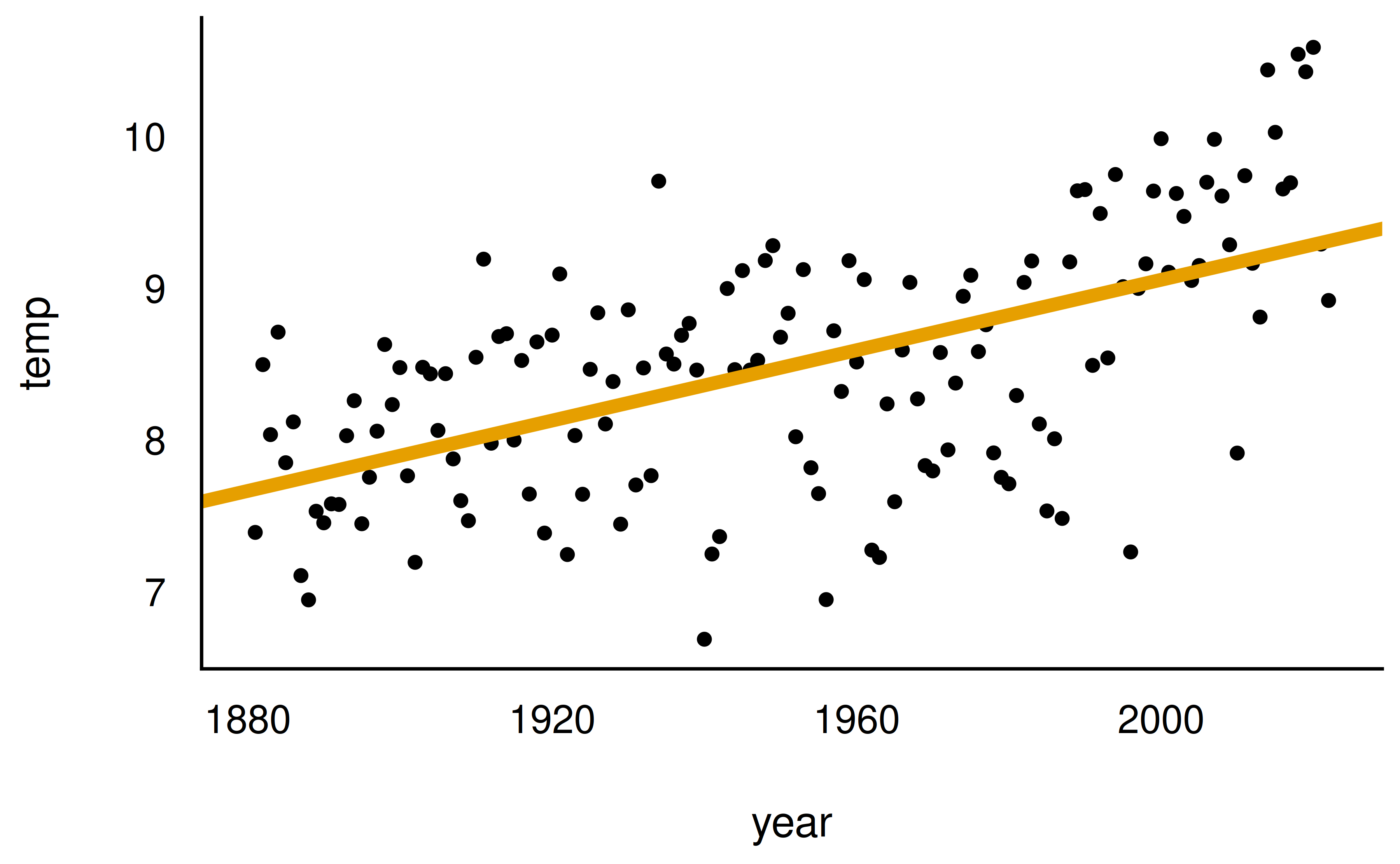 lm_wetter1 <- lm(temp ~ year, data = wetter)